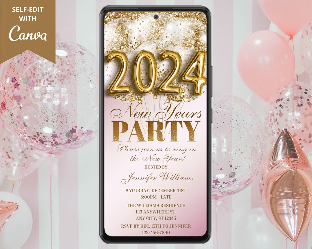 Digitale 2024 New Years Eve Party uitnodiging elektronische Etsy