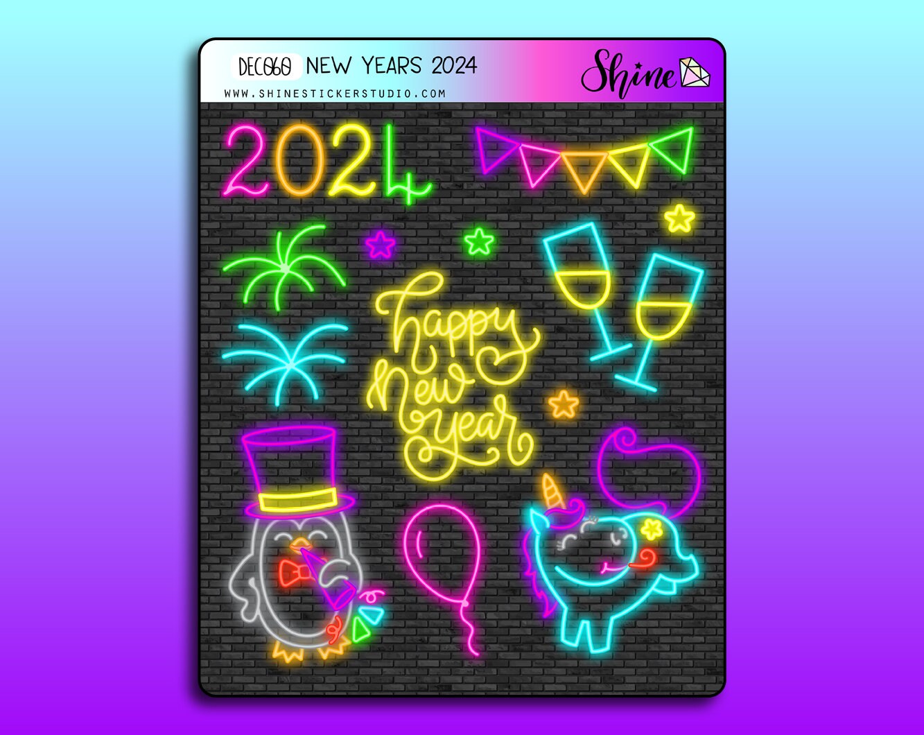 Neon Silvester 2024 Dekorative Planner Sticker Niedliche Etsy