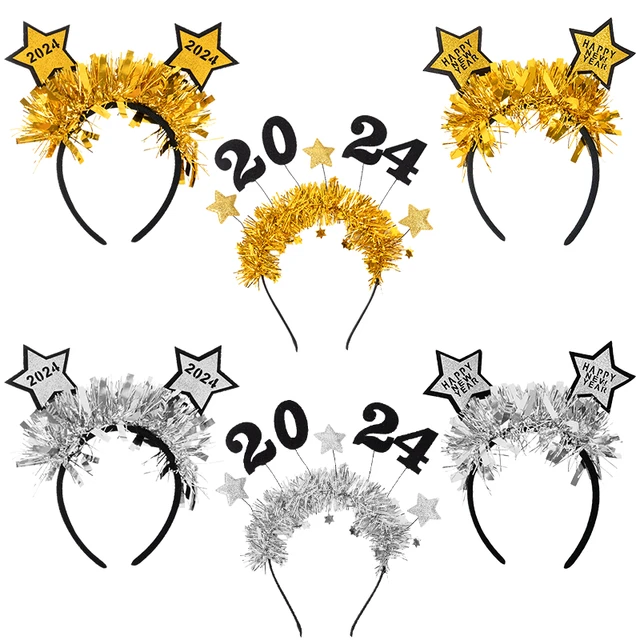 2024 frohes neues Jahr Stirnband Gold Silber Glitter Stern