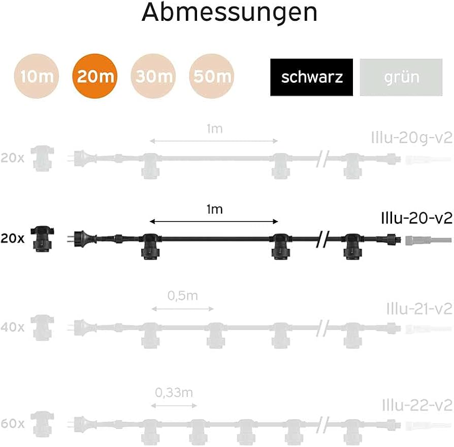 NCC Licht Illu Fairy Lights Complete Set 20 Metres Black 20 E27