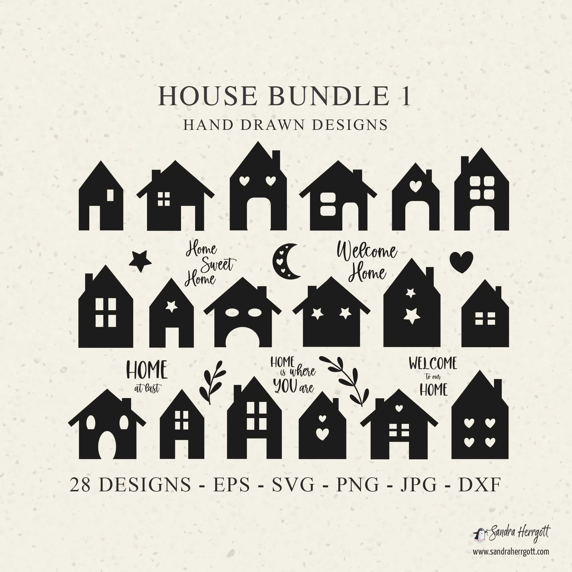 Christmas Houses Plotter Files SVG DXF PNG Leaves Star Heart